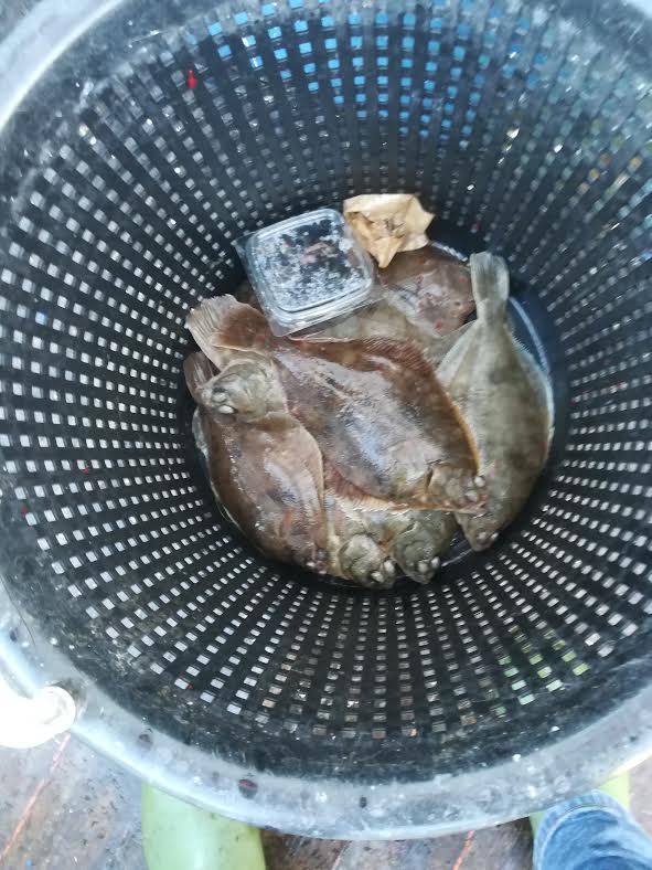 Jan have rigtig godt gang i fiskeriet. Han fik alene 20 flade, Leo fik 9, medens Jens måtte nøjes med 7. Leo fangede den største, en rødspætte på 850 gram. Der var i det hele taget fanget mange spætter, medens skrubberne var sjældne gæster i kurvene.