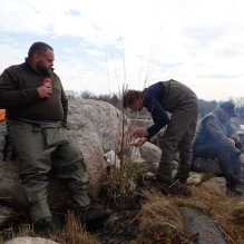 Så kom turen til årets udsætninger af mundingsudsætninger af smolt. Vi har fået tildelt lidt færre fisk end i de foregående år, men de er blevet spredt ud på de ”sædvanlige steder” bl. a. Sørup Å, Gundslev Å, Fribrødre Å, Tunnerupløbet, Marrebæk Kanal, Flintinge Å og Saxkjøbing Å. Så må vi blot håbe på, at de trækker ud på kysten og vokser sig store og ikke ender i maverne på skarv, odder eller sæl. Det var som sædvanlig Flemming fr Vork Dambrug, der kom med fiskene.